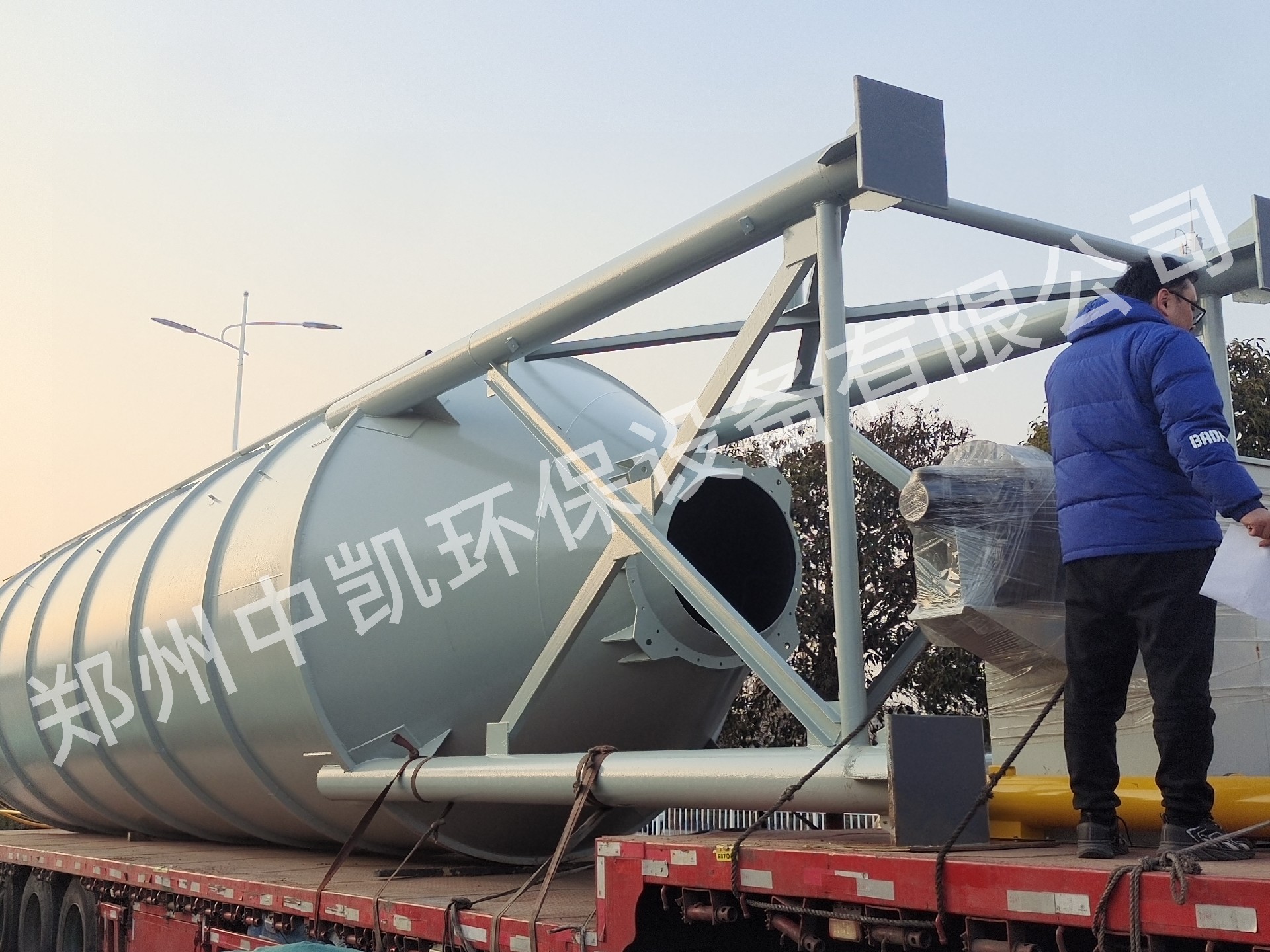 我厂为青海西宁提供65m³石灰投加设备两套,料仓主体有效容积:65m³,直径3m。筒仓S=6mm,,材质:Q235碳钢油漆防腐,含顶部平台、人孔、护栏及爬梯,阀门管件料仓支腿中心距:2.12m料仓防腐油漆措施料仓内部(沾料部位)环氧富锌底漆+环氧云铁中漆+环氧沥青面漆料仓外部环氧富锌底漆+环氧云铁中漆+氯化橡胶面漆