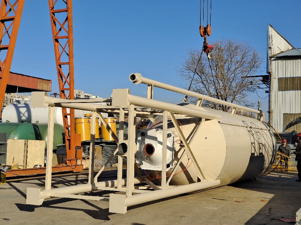 我厂为江西新余提供25m³石灰投加设备2套,料仓主体有效容积:25m³,直径2.3m。直段高6米;材质:Q235碳钢油漆防腐,含顶部平台、人孔、护栏及爬梯,阀门管件管料,料仓防腐油漆措施料仓内部(沾料部位)环氧富锌底漆+环氧云铁中漆+环氧沥青面漆料仓外部环氧富锌底漆+环氧云铁中漆+氯化橡胶面漆。